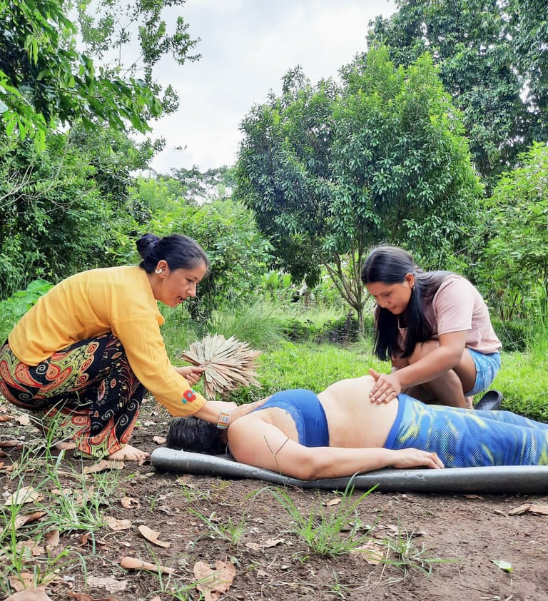 We collaborate with an incredible lineage of traditional medicine at the Chindoy Healing House and Training School, as well as a group of women caregivers.